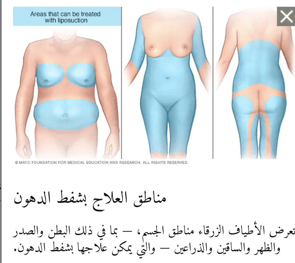 مناطق العلاج بشفط الدهونافتح مربع الحوار المنبثق